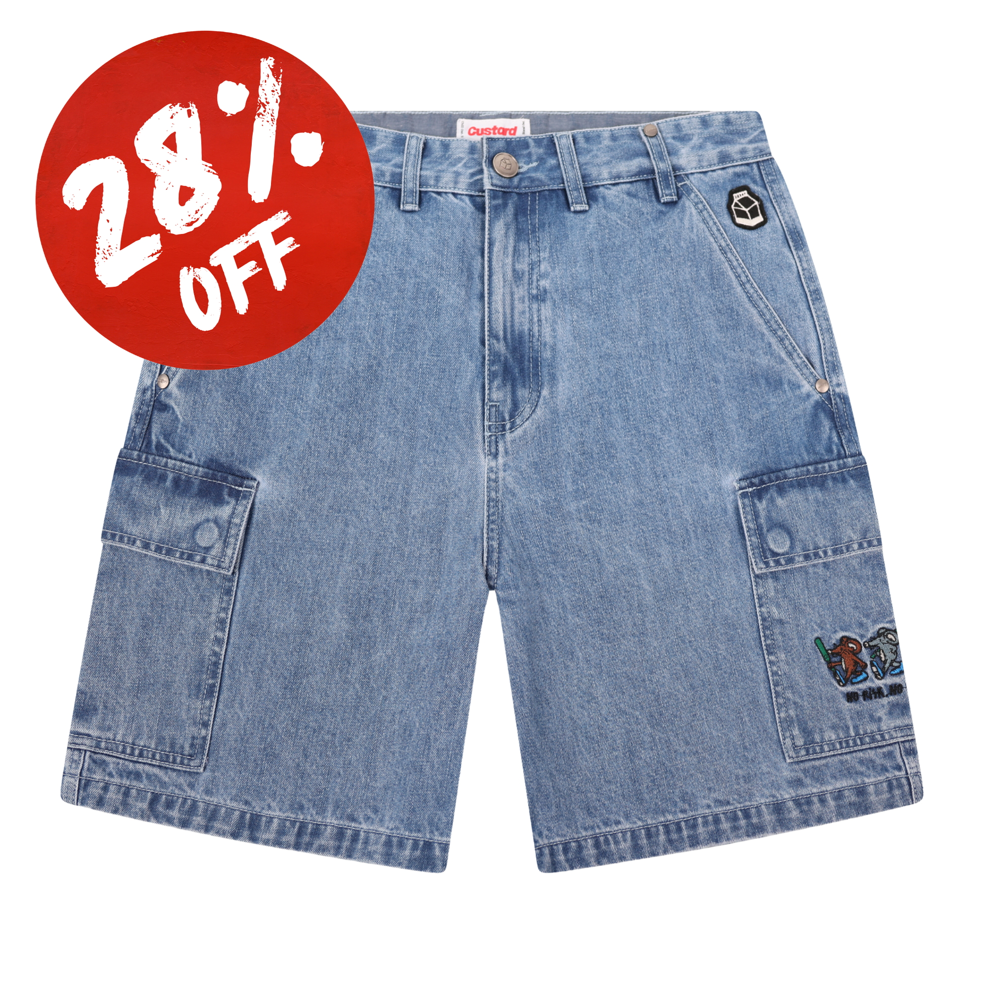 Our 3 Mice Cargo Jorts are crafted from 100% premium cotton, and are a relaxed fit. These jorts feature belt loops with an internal drawstring, a custom leather patch, front and back pockets and a custom front belt loop snap closure.