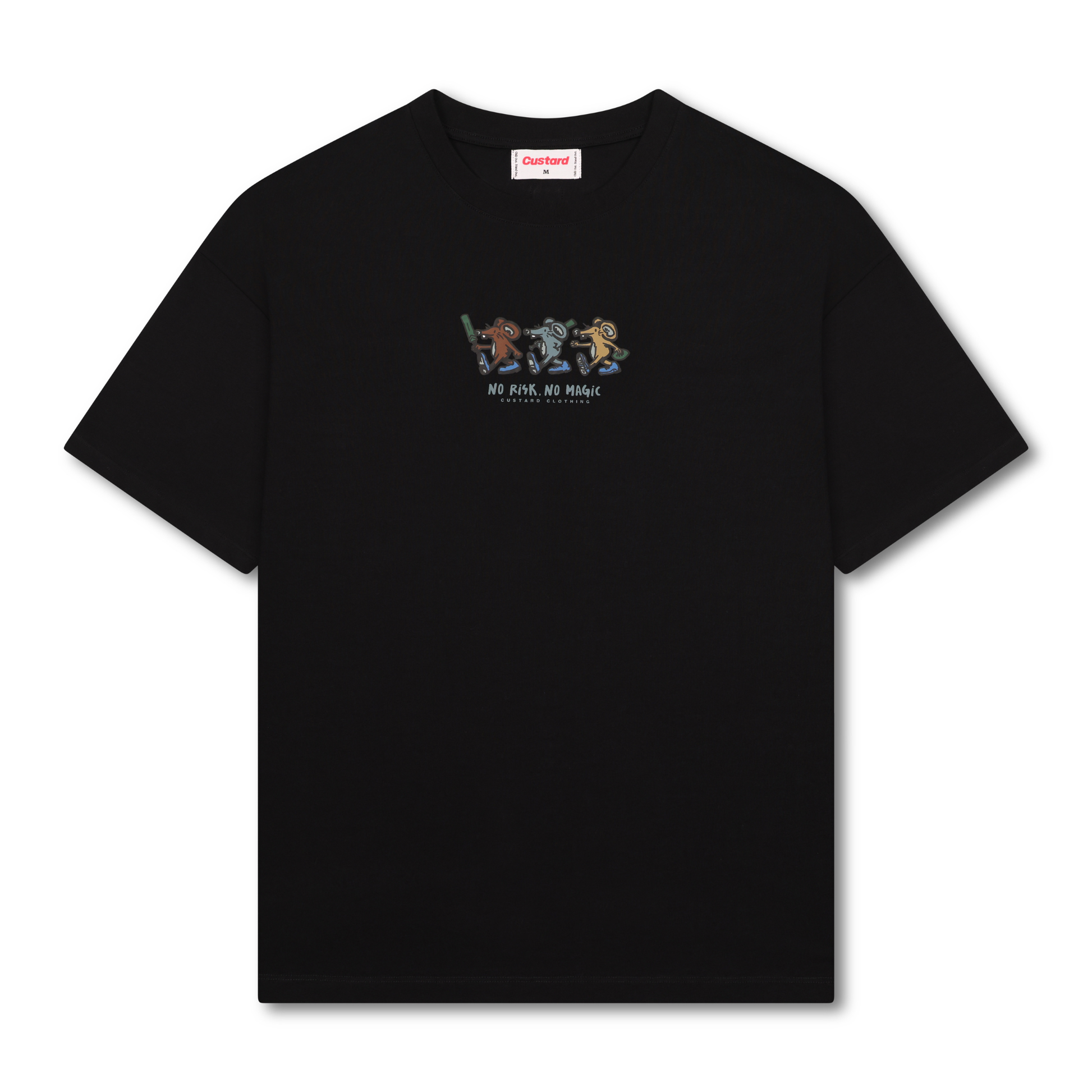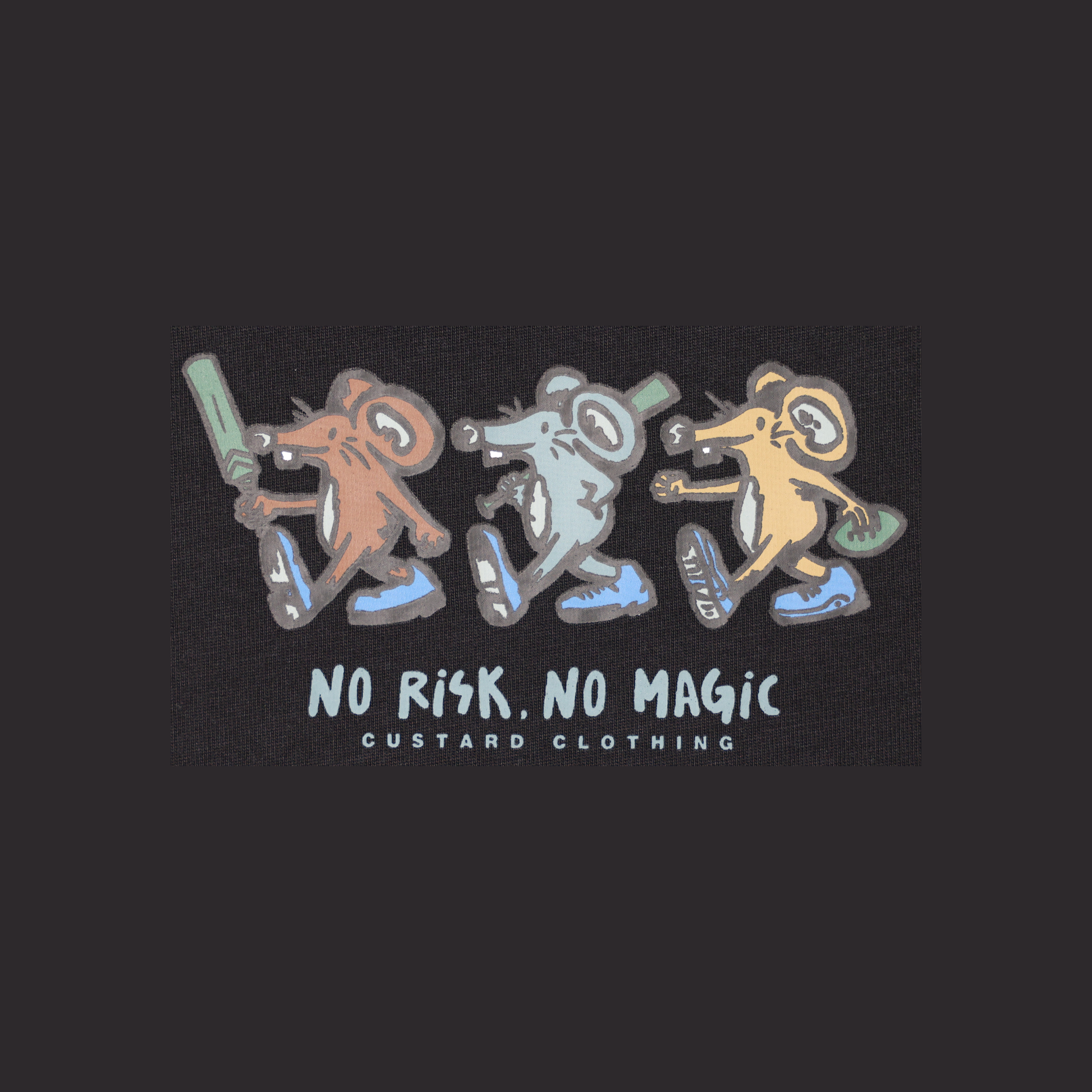 The 3 Mice Tee is crafted from luxury heavyweight cotton, offering a premium, structured feel with a relaxed oversized fit. It features a high-quality rubber print graphic on the chest and is finished with our signature felt patch on the back of the neck for a clean Custard touch.