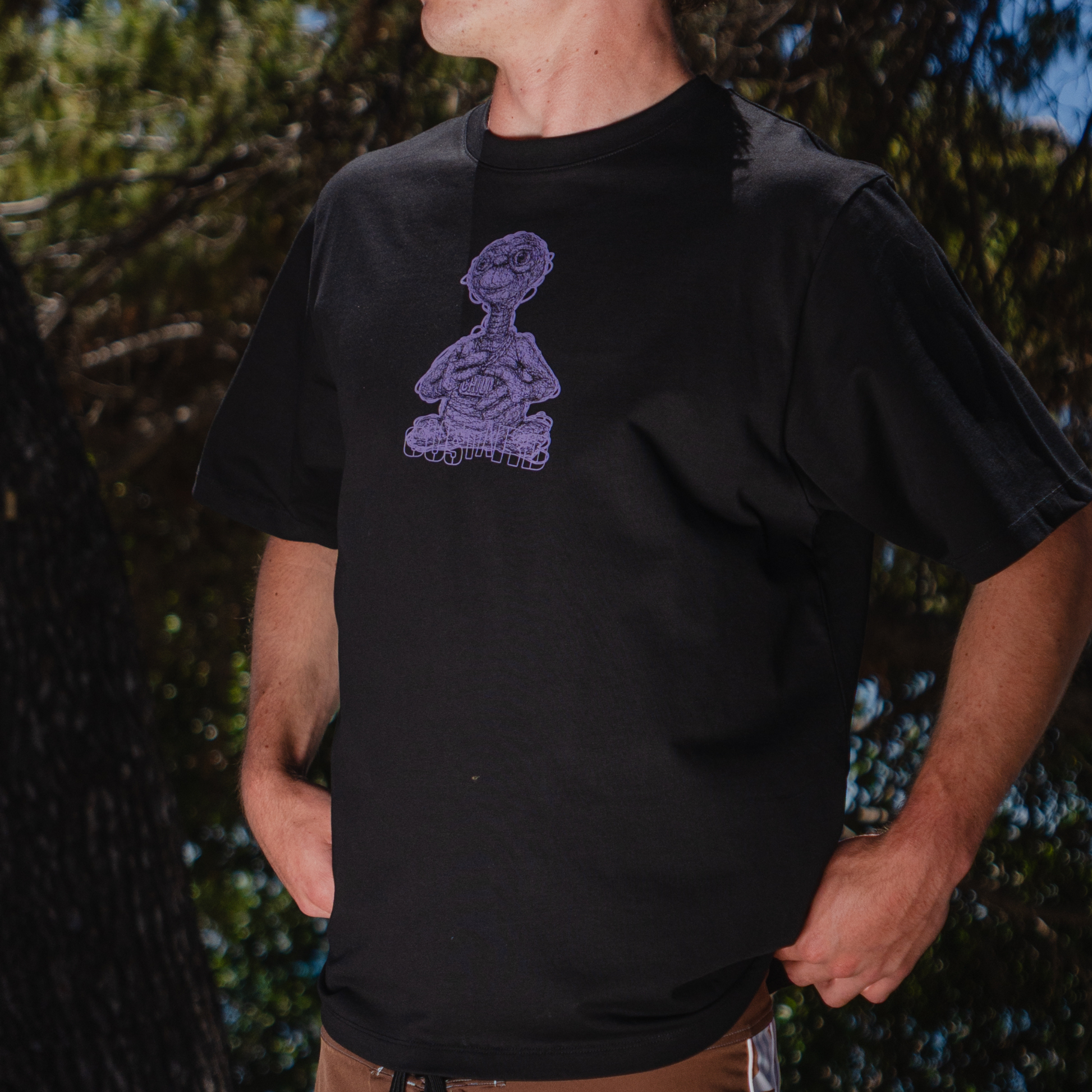 Finished with a high-quality rubber print graphic on the chest and our signature felt patch on the back of the neck, this tee blends bold design with refined detailing.