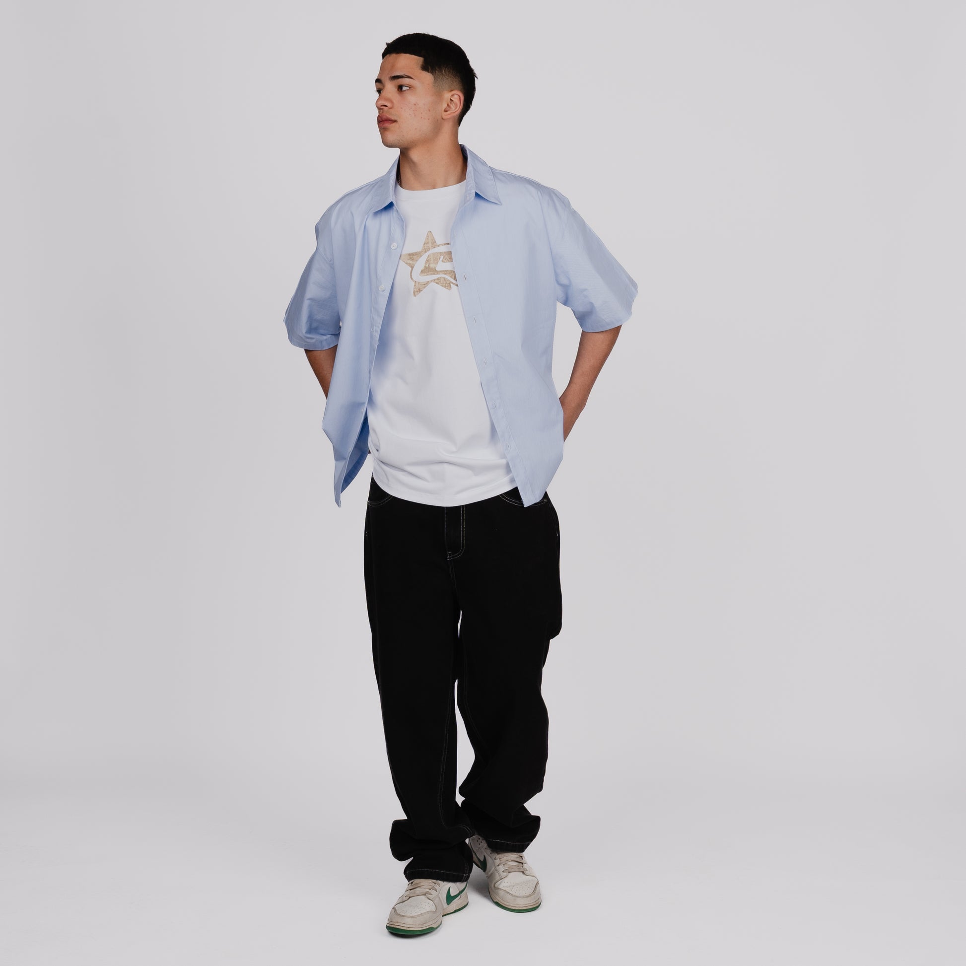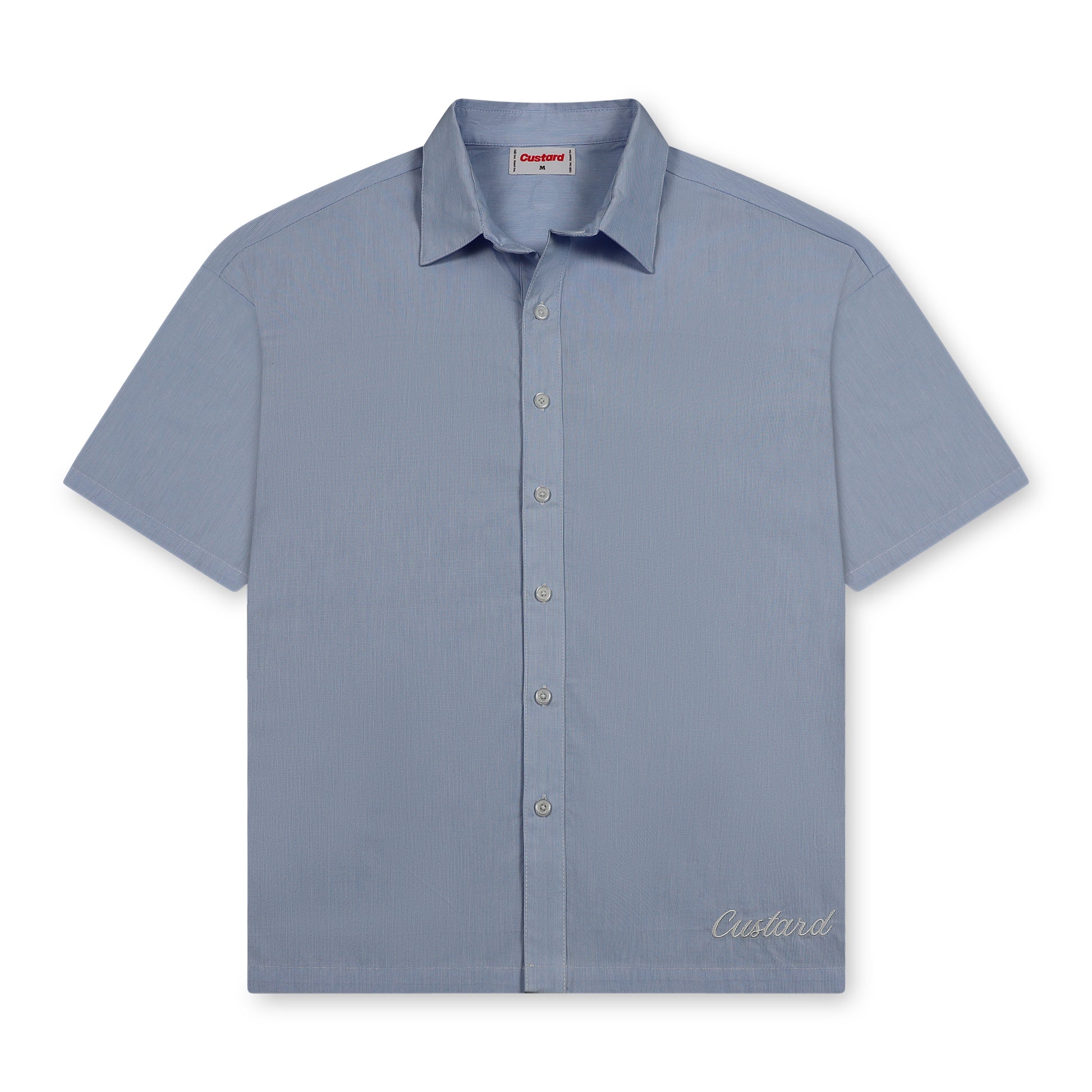 The Stripe Button-Up is crafted from premium cotton, with a slightly chopped fit and long sleeves. They have the Embroidered wordmark positioned on the front bottom left of the shirt and are finished off with an embroidered custard carton on the back of the neck.