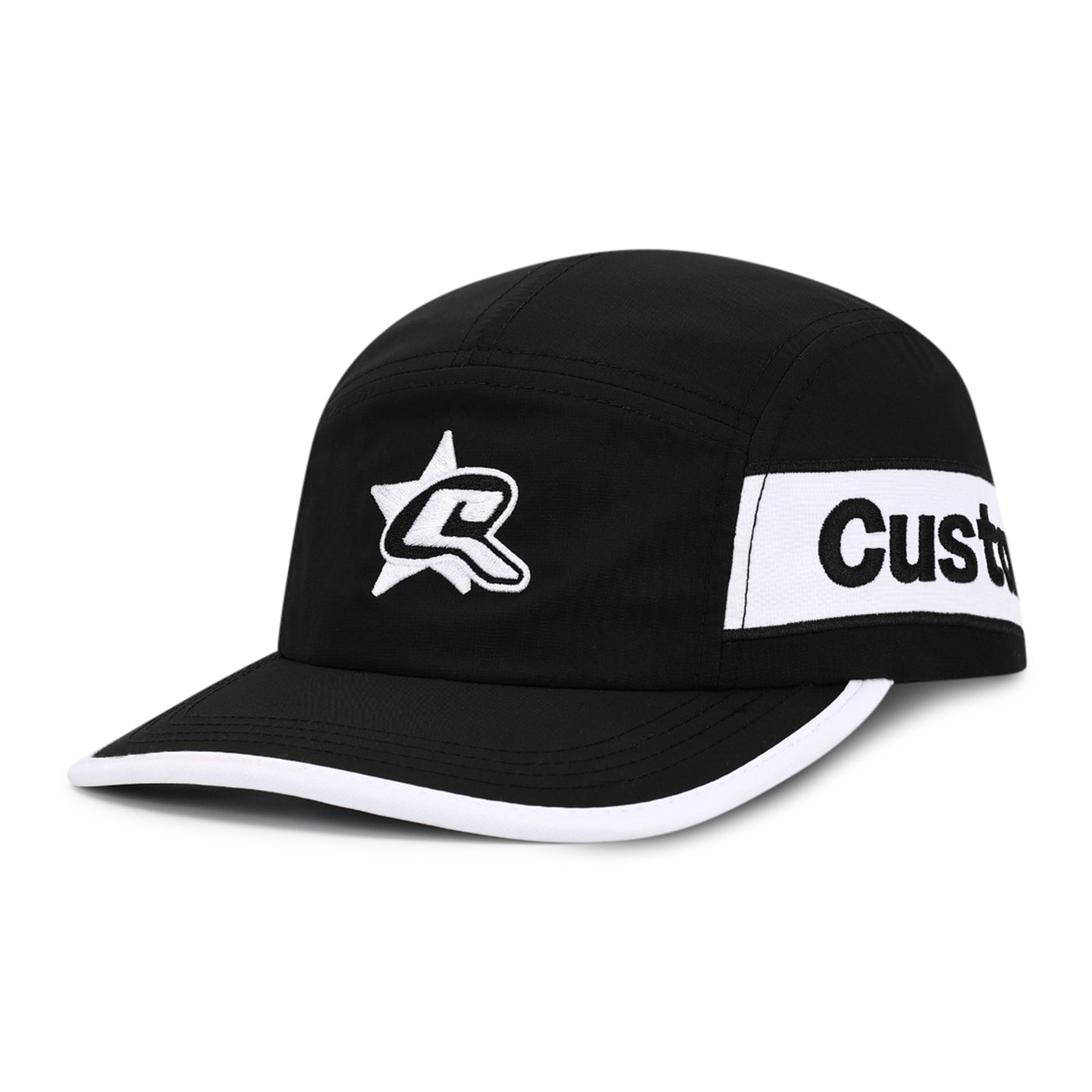 6 panel nylon cap with a curved brim and adjustable snap buckle perfect for everyday wear, including sports and water activities. Our camper caps are suitable for hand washing.
