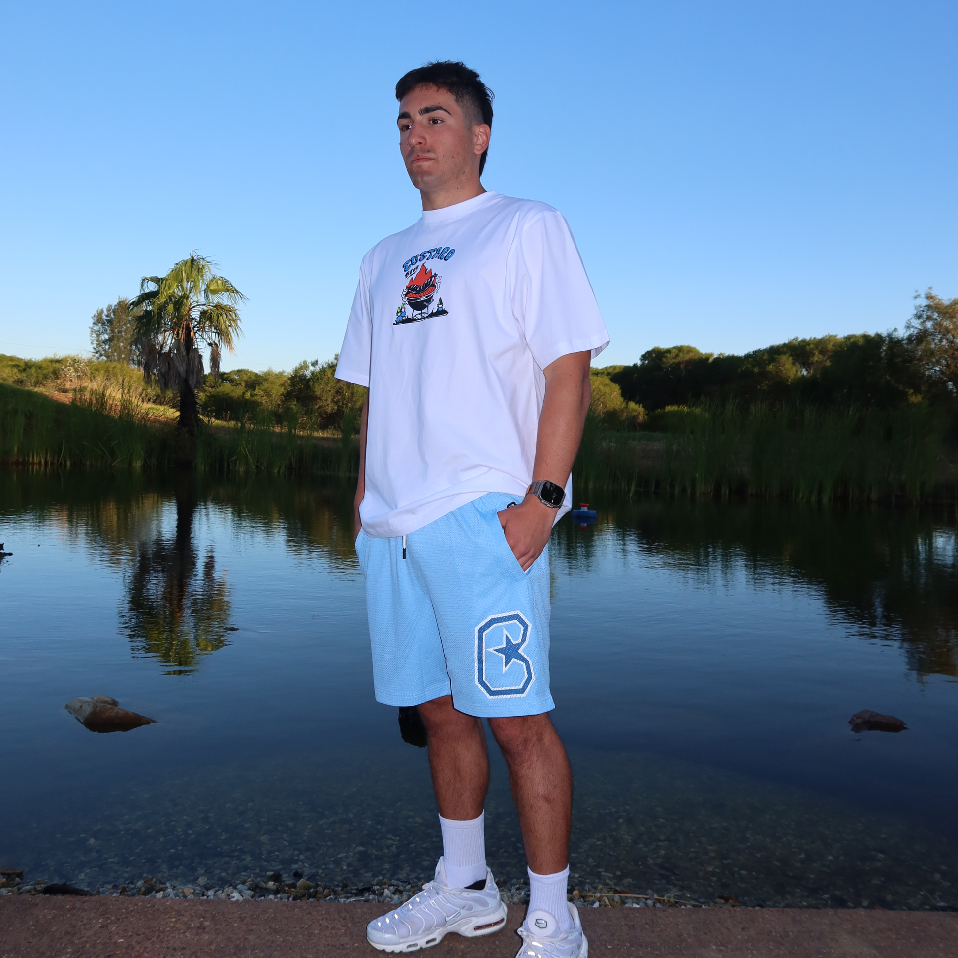 The "C" mesh shorts are crafted from a premium polyester spandex blend, with an internal liner and a relaxed fit. This material makes for a comfortable, everyday short. Featuring an elasticated waistband with a drawstring and deep front pockets. Finished with a high-quality rubber print design, and our signature felt patch.Â