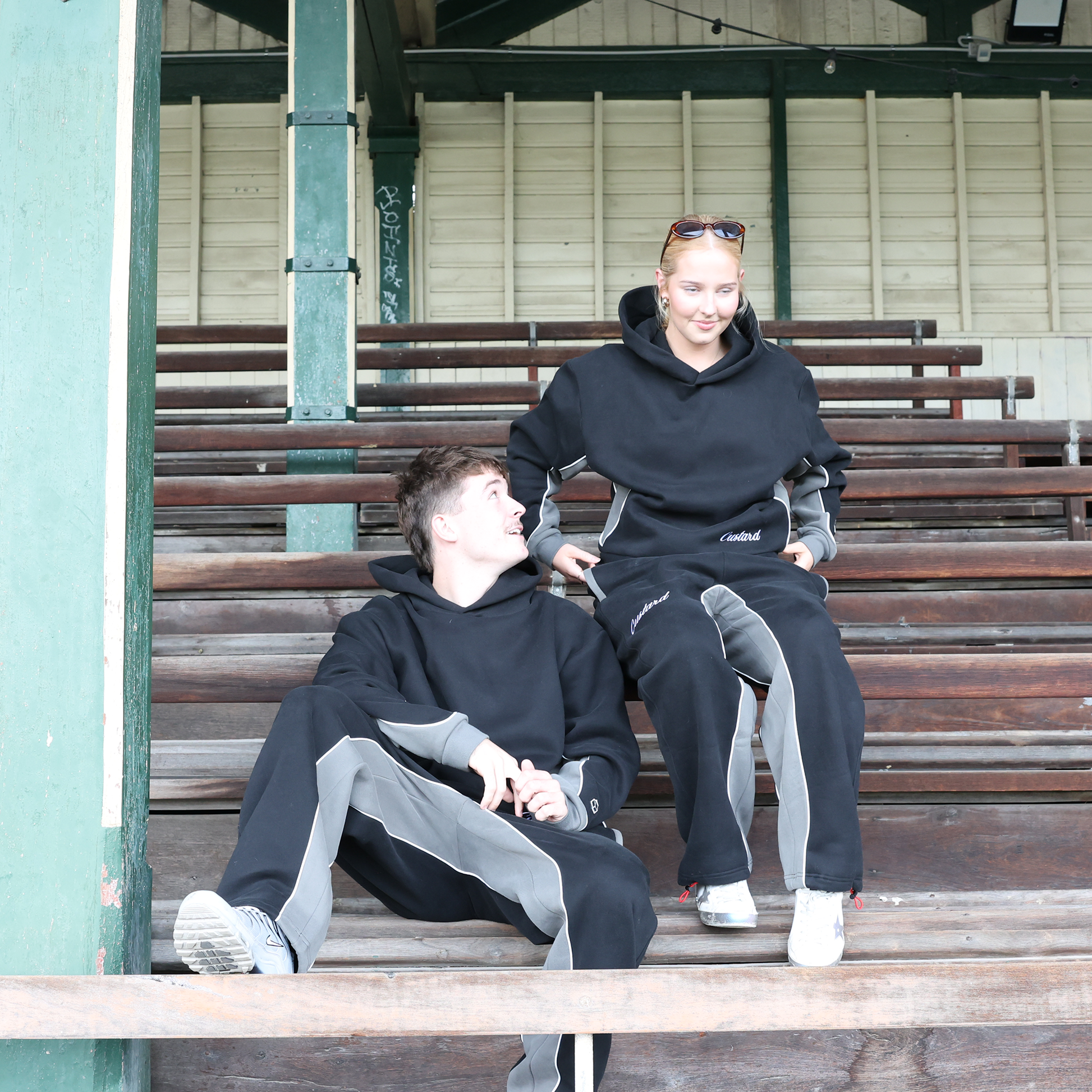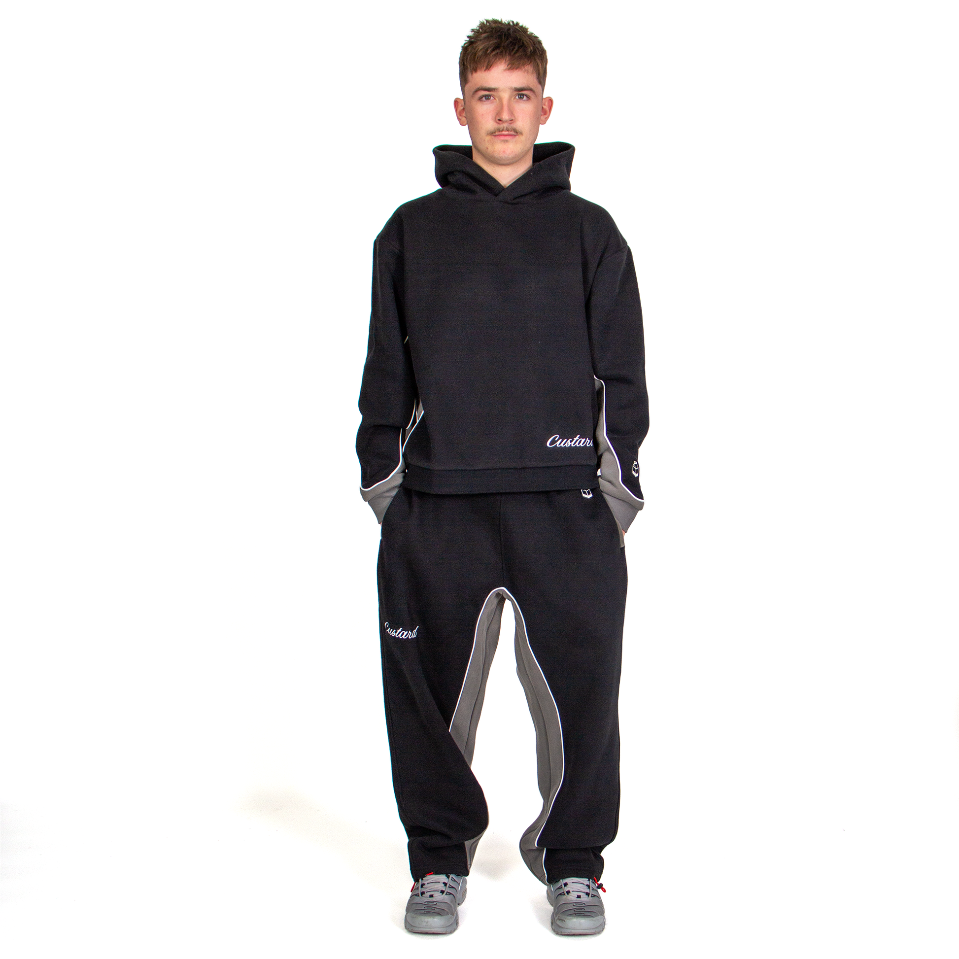 Our Baggie Pannelled Tracksuit Pants are crafted using a premium cotton synthetic fibre blend, with a soft fleece interior. Designed with a relaxed and oversized silhouette for a comfortable and stylish fit and feel, making these perfect for everyday wear. Featuring a pull tab at the cuff, elastic waistband, drawstrings with custom aglets and deep side seam pockets. Finishing touches include our signature felt patch on the top leg, and an embroidered CUSTARD® logo on the hip.